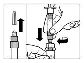 Danach die Fertigspritze sofort vom Adapter abschrauben.