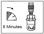Die Durchstechflasche während 5 min nicht bewegen, bis das Lösungsmittel die Sandostatin-LAR-Trockensubstanz vollständig benetzt hat. Während dieser Zeit soll der Patient vorbereitet werden. Ohne die Durchstechflasche umzudrehen, das Pulver am Boden und an der Wand der Durchstechflasche kontrollieren. Wenn noch trockene Stellen vorhanden sind, die Durchstechflasche weiter stehen lassen, um eine vollständige Benetzung zu erreichen. Hinweis: Es ist normal, dass sich der Kolben leicht nach oben bewegt, da in der Ampulle ein leichter Überdruck besteht.