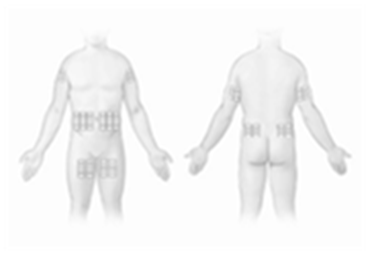 Hizentra kann an Stellen wie Bauch, Oberschenkel, Oberarm und lateraler Hüfte infundiert werden (siehe Bild 1). Wenn hohe Dosen (> 50 ml) gegeben werden, ist es ratsam, sie an mehreren Stellen zu verabreichen. Bei Säuglingen und Kindern sollte die Infusionsstelle alle 5 – 15 ml gewechselt werden. Es gibt keine Beschränkung, an wie vielen Stellen verabreicht werden kann. Die Infusionsstellen sollten mindestens 5 cm voneinander entfernt sein. Es können gleichzeitig mehrere Infusionsgeräte verwendet werden. Das Volumen des injizierten Präparats an einer bestimmten Stelle kann variieren. Bei nachfolgenden Verabreichungen sollten die Infusionsstellen geändert werden.