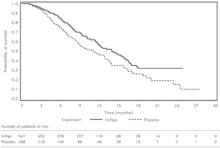 Indikationen/AnwendungsmöglichkeitenXofigo ist indiziert für die Behandlung von Patienten mit kastrationsresistentem Prostatakarzinom (CRPC) und symptomatischen Knochenmetastasen ohne bekannte viszerale Metastasen. Bei nicht orchiektomierten Patienten soll eine antiandrogene Behandlung zur Suppression des Testosteronspiegels auf Kastrationsniveau weitergeführt werden.