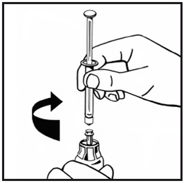 14.Ziehen Sie die gefüllte Spritze mit einer Drehbewegung gegen den Uhrzeigersinn aus dem Durchstechflaschen-Adapter und verwerfen Sie die leere Durchstechflasche.