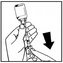 10.Injizieren Sie langsam das gesamte Lösungsmittel in die Durchstechflasche mit dem Pulver, indem Sie den Spritzenstempel nach unten drücken.