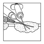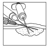 ·Wiederholen Sie diese Schritte für andere Läsionen, die injiziert werden müssen. Benutzen Sie jedes Mal eine neue Nadel, wenn die Nadel vollständig aus einer Läsion entfernt wird und wenn eine andere Läsion injiziert wird.