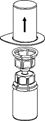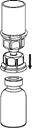 4. Die AFSTYLA-Flasche auf eine ebene und feste Oberfläche stellen. Die Lösungsmittelflasche mit dem aufgesetzten Mix2Vial Set herumdrehen und den Dorn des transparenten Adapterendes senkrecht nach unten in den Stopfen der AFSTYLA-Flasche einstechen. Das Lösungsmittel läuft automatisch in die AFSTYLA-Flasche über.