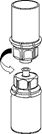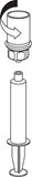 7. Luft in eine leere, sterile Spritze aufziehen. Die AFSTYLA-Flasche aufrecht halten, die Spritze durch Aufschrauben im Uhrzeigersinn mit dem Luer-Lock-Anschluss des Mix2Vial verbinden und die Luft in die AFSTYLA-Flasche injizieren.