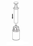8. Den Stempel der Spritze gedrückt halten, das gesamte System herumdrehen und das Produkt durch langsames Zurückziehen der Kolbenstange in die Spritze aufziehen.