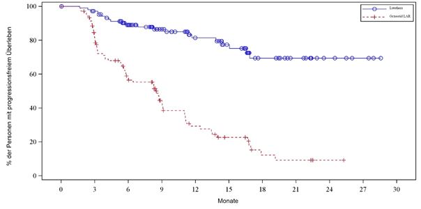*: Die Analyse wurde bei 116 Patienten in der Lutathera CA-Gruppe und 113 Patienten in der Gruppe mit hochdosiertem Octreotid LAR durchgeführt (N=229).