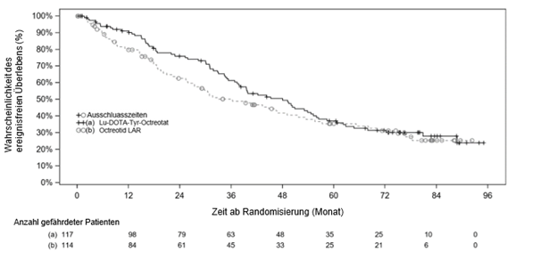 **: Die Analyse wurde bei 117 Patienten in der Lutathera CA-Gruppe und 114 Patienten in der Gruppe mit hochdosiertem Octreotid LAR durchgeführt (N=231).