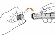 ·Prüfen Sie, ob bereits ein Flaschenadapter in den Flaschenhals eingesetzt ist. Wenn er nicht eingesetzt ist, nehmen Sie den Adapter von der Spritze ab und setzen Sie ihn ein. Für die weitere Anleitung siehe Schritt 4 und Schritt 10 in Abschnitt A. Wenden Sie sich an Ihren Arzt bzw. Ihre Ärztin, wenn Sie unsicher sind oder der Adapter fehlt.