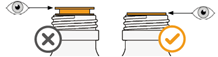 6. Setzen Sie die Schutzkappe wieder auf die Flasche und drehen Sie sie zum Verschliessen im Uhrzeigersinn. Vergewissern Sie sich, dass die Schutzkappe sicher auf der Flasche aufsitzt, bevor Sie mit dem nächsten Schritt fortfahren.