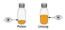 1. Prüfen Sie, ob sich in der Flasche Pulver oder eine flüssige Lösung befindet. ·Wenn sich in der Flasche Pulver befindet, fahren Sie mit Schritt 2 unten fort. ·Wenn sich in der Flasche eine Lösung befindet, fahren Sie mit Abschnitt B Schritt 2 fort. ·Wenn sich in der Flasche eine Lösung befindet, geben Sie kein weiteres Wasser in die Flasche.