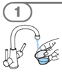 Schritt 1. Spülen Sie den Dosierbecher sofort nach der Dosierung unter sauberem, kühlem Wasser aus. Überschüssiges Wasser abschütteln und mit sauberen Papiertüchern abtrocknen. Hinweis: Halten Sie den Dosierbecher immer von anderen Küchenutensilien fern.