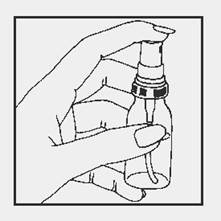 Halten Sie die Flasche senkrecht mit dem Finger auf den Sprühkopf (siehe Bild). Den Spray vor der Anwendung nicht schütteln.