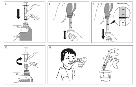Bei Verwendung der Suspension zum Einnehmen sollte die von Ihrem Arzt bzw. Ihrer Ärztin verschriebene Dosierung in Millilitern (ml) angegeben sein und nicht in Milligramm (mg). Dies ist wichtig, da die Applikationsspritze, mit welcher die korrekte Dosis aus der Flasche entnommen wird, eine Graduierung in Millilitern aufweist. Falls Ihre Verschreibung in mg ist, sollten Sie Ihren Arzt oder Apotheker bzw. Ihre Ärztin oder Apothekerin um Rat fragen.