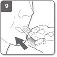 Hinweis: Während des Einatmens durch den Inhalator dreht sich die Kapsel in der Kammer, sodass ein schwirrendes Geräusch zu hören ist. Das in die Lunge eingeatmete Arzneimittel schmeckt süsslich. Ist kein schwirrendes Geräusch hörbar, ist die Kapsel möglicherweise im Kapselfach verklemmt. Ist dies der Fall: ·Inhalator öffnen und die Basis des Inhalators leicht anklopfen. Die Durchstechtasten nicht drücken. ·Inhalator wieder schliessen und Schritte 8 und 9 wiederholen. Es kann gelegentlich vorkommen, dass sehr kleine Kapselstücke den Filter passieren und in Ihren Mund gelangen. Sollte dies eintreten, können Sie diese Stücke unter Umständen auf Ihrer Zunge spüren. Diese Stücke sind nicht schädlich, wenn sie geschluckt oder inhaliert werden. Die Wahrscheinlichkeit, dass die Kapsel in Stücke zerfällt ist höher, wenn sie mehr als einmal durchstochen wird (Schritt 6).