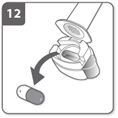 Kapsel herausnehmen. Das Mundstück wieder öffnen, den Inhalator kippen und die leere Kapsel entnehmen. Diese Kapsel kann mit dem Haushaltsabfall entsorgt werden. Sollte Ihr Arzt oder Ihre Ärztin Ihnen mehr als eine Kapsel verschrieben haben, wiederholen Sie Schritte 3 bis 12.