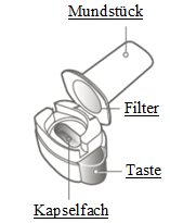 Die Kapsel in das Kapselfach legen. Die Kapsel nie direkt in das Mundstück legen.