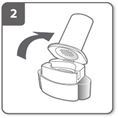 Inhalator öffnen. Das Basisteil des Inhalators festhalten und das Mundstück aufklappen, um den Inhalator zu öffnen.