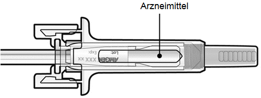 Kontrollieren Sie das Arzneimittel und die Fertigspritze.