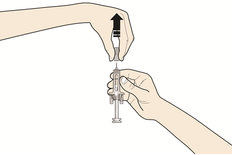 Ziehen Sie vorsichtig die graue Nadelkappe gerade und weg von Ihrem Körper ab.