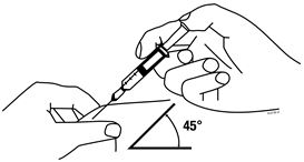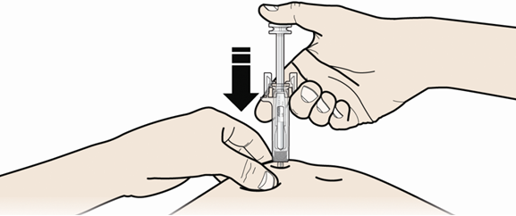 Die Haut zusammengedrückt halten. STECHEN Sie die Nadel in die Haut.