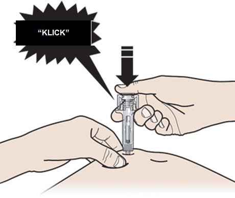 Es ist wichtig, nach dem «Klick» vollständig durchzudrücken, um Ihre gesamte Dosis abzugeben.