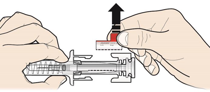 Versuchen Sie nicht, das abziehbare Etikett auf dem Zylinder der Fertigspritze abzulösen, bevor Sie Ihre Injektion anwenden.
