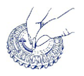 3. Jeden Tag die transparente äussere Scheibe in Pfeilrichtung (im Uhrzeigersinn) um eine Position weiterdrehen und die nächste Tablette entnehmen.
