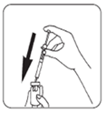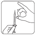 ·Halten Sie die Spritze so, dass die Injektionsnadel nach oben zeigt und klopfen Sie leicht mit den Fingern an die Fertigspritze, bis sich die Luft an der Spitze ansammelt. Drücken Sie den Spritzenkolben, bis die Luftblasen verschwunden sind. Berühren Sie die Injektionsnadel nicht und achten Sie darauf, dass die Nadel nicht mit einer Oberfläche in Berührung kommt.