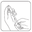 ·Drehen Sie die Durchstechflasche um und ziehen Sie den gesamten Inhalt der Durchstechflasche wieder behutsam in die Spritze auf. Falls Lösung in der Durchstechflasche zurückbleibt, halten Sie die Durchstechflasche kopfüber und ziehen Sie die Nadel langsam zurück, bis die Öffnung der Nadel noch gerade auf der Innenseite des Stopfens ist. Durch den seitlichen Spalt im Stopfen, können Sie die Bewegung der Nadel und des Lösungsmittels kontrollieren. Es ist wichtig, dass Sie den gesamten Inhalt der Durchstechflasche aufziehen.