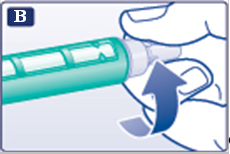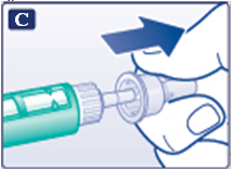 C Ziehen Sie die grosse äussere Nadelkappe ab und bewahren Sie sie für später auf.