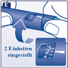E Stellen Sie mit dem Dosiswähler 2 Einheiten ein.