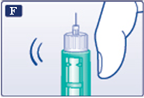 F Halten Sie Ihren FlexPen mit der Nadel nach oben und klopfen Sie ein paar Mal mit Ihrem Finger leicht gegen die Patrone, um vorhandene Luftblasen oben in der Patrone zu sammeln.