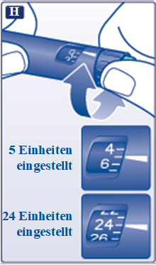 H Verwenden Sie immer den Dosisvorwahlknopf und die Dosisanzeige, um zu sehen, wie viele Einheiten Sie eingestellt haben, bevor Sie das Insulin injizieren.
