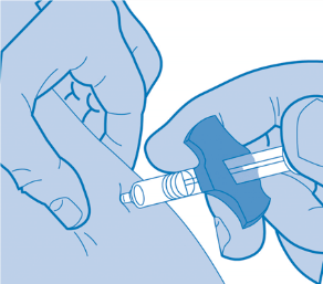Halten Sie die Haut zusammengedrückt, bis die Injektion beendet ist. Ziehen Sie dann die Nadel vorsichtig gerade heraus.
