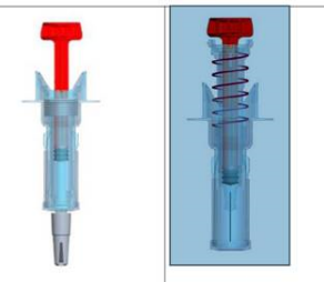 Hinweis: Die Aktivierung des Nadelschutz-Systems wird durch Entfernen der Schutzkappe vorbereitet. Bei der Injektion ist darauf zu achten, dass der Kolben maximal heruntergedrückt und die Spritze vollständig entleert wird. Nur dadurch wird das Nadelschutz-System aktiviert.