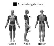 Befestigen Sie die Klebeseite des Pflasters auf sauberer, trockener, gesunder Haut in den folgenden, im Bild grau markierten Bereichen: ·Schulter oder Oberarm ·Bauch ·Flanke (seitlich zwischen Rippen und Hüfte) ·Oberschenkel oder Hüfte