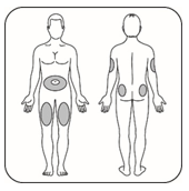 Die subkutane Verabreichung (Verabreichung unter die Haut) erfolgt am besten durch Sie selbst im Bereich der Oberarme, der Hüften, des Gesässes oder des Bauches. Die Einstichstelle ist bei jeder Injektion nur innerhalb des vom Arzt bzw. der Ärztin empfohlenen Gebiets zu wechseln und darf nicht massiert werden.