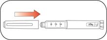 Schritt 15: ·Setzen Sie die Pen-Schutzkappe wieder auf, indem Sie den Schutzkappen-Klip in eine Linie mit dem Dosisfenster bringen und die Schutzkappe gerade aufdrücken.