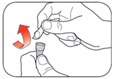 ·Sollten Sie die Schutzkappe des Pens nicht abziehen können, drehen Sie die Kappe behutsam hin und her und ziehen Sie die Kappe dann gerade ab.