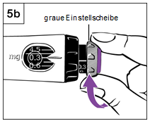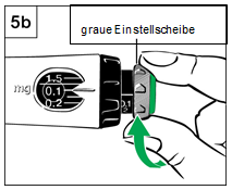 5.Drehen Sie zum Aufziehen der Dosis die graue Dosiseinstellscheibe, bis kein Klicken mehr zu hören ist.