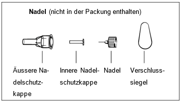 ·Entsorgen Sie alle gebrauchten Nadeln in einem geeigneten, nicht durchstechbaren und geschlossenen Abfallbehälter. Fragen Sie Ihren Arzt/Ihre Ärztin bzw. eine medizinische Fachperson, wie Sie die Nadel korrekt entsorgen.