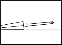 Tauchen Sie den Spatel mit der perforierten Oberfläche für jeden zu behandelnden Nagel in das Glasfläschchen ein und streifen Sie ihn nicht am Flaschenhals ab (es besteht das Risiko, dass der Schraubverschluss mit der Flasche verklebt).