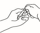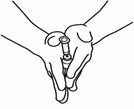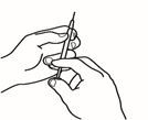4.3. Entfernen Sie die Schutzkappe von der Nadel der vorbereiteten Injektionsspritze. Ergreifen Sie vorsichtig die desinfizierte Haut an der Injektionsstelle mit einer Hand. Mit der anderen Hand halten Sie die Injektionsspritze am Spritzenzylinder, wie einen Kugelschreiber fest. Beugen Sie Ihr Handgelenk zurück und stechen Sie dann die Nadel schnell, in einem 45°-Winkel ein.