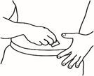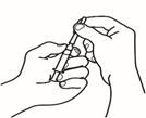 2.5. Rollen Sie die Durchstechflasche vorsichtig etwa 15 Sekunden lang zwischen Ihren Handflächen hin und her. Drehen Sie anschliessend die Durchstechflasche einmal kurz um und wieder zurück. Dabei bleibt die leere Spritze mit der Rekonstitutionsnadel weiterhin in der Durchstechflasche.