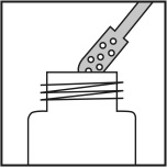3.Tauchen Sie einen der mitgelieferten, wiederverwendbaren Spatel in das Fläschchen mit dem Medizinallack. Der Nagellack darf nicht am Fläschchenhals abgestreift werden.