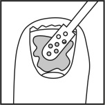 1.Erkrankte Teile der Nägel (vor allem Nagelflächen) mit einer der Packung beiliegenden Nagelfeile so gut wie möglich abfeilen. Im Laufe der Behandlung nach Bedarf nachfeilen. Achtung: Eine für die Behandlung benützte Nagelfeile darf für die Pflege gesunder Nägel nicht mehr verwendet werden, da sonst die Infektion verschleppt werden könnte.