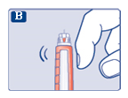 Klopfen Sie mit dem Finger ein paar Mal leicht gegen den oberen Teil des Fertigpens, um eventuell vorhandene Luftblasen an die Oberfläche steigen zu lassen.