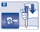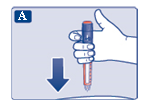 Wechseln Sie die Nadel, wie in Abschnitt 5 beschrieben, und wiederholen Sie alle Schritte ab Abschnitt 1: Bereiten Sie Ihren Fertigpen für die Injektion vor. Vergewissern Sie sich, dass Sie die ganze Dosis wählen, die Sie benötigen.