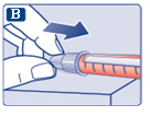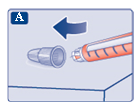 • Ziehen Sie die innere Nadelkappe ab und entsorgen Sie diese. Falls Sie versuchen, diese wieder aufzusetzen, können Sie sich versehentlich mit der Nadel stechen.